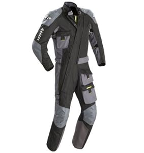 Rock Tex 600 outer shell. 100% waterproof. Grade A rated C.E. armor in shoulders, knees and elbows. Removable spine pad with pocket for optional C.E. spine protector. Melt resistant material on lower leg area. Removable insulated full suit liner. Big Air ventilation system. Double layer rock tex 600 on shoulders, elbows and knees. Sure Fit adjustable waist, chest, upper legs and ankles. Elastic sleeve adjusters. Reflective stripe.