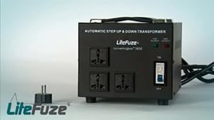 Lifetime Warranty, No Noise, More Efficient, Almost half the weight Only 26LB compared to other Voltage Transformers at this size, LiteFuze Convertingbox 3600 Watt Fully Automatic Step Up/Down voltage converter, Operates on 110/220V AC Automatically. No worries to set input voltage manually. Has a Patented universal socket outlet which means any type of plug fits into the converter. Has built in thermal fuse protection (Reset button). Efficiency Factor: 1.25, Dynamic casing design offers ventilation to the voltage transformer, Fully Grounded Transformer from Input to Output for safe operation, CE Certified, Free Euro Plug Adapter, Efficiency Factor Use this factor to calculate the correct wattage transformer needed for your items. Multiply the WATT rating on your product with this factor and purchase transformer of at least that size. Example: If your blender requires 350W, then multiply 350 x 1.25 (efficiency factor of convertingbox) = 437.5W. Thus, convertingbox 500 is recommended for this particular blender. To use multiple products, simply add watt rating of each product and multiply the combined watt rating with the efficiency factor. Always purchase a larger transformer than your appliances required wattage to handle any power surges during operation. Feel free to contact LiteFuze for more info.