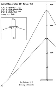 The Sunforce 30 Foot Tower Kit is designed to mount the Sunforce 600 Watt Wind Generator (sold separately, model # 45444) and other small wind turbines. Designed to withstand forces on the wind generator and tower from high, heavy winds, this all-weather tower kit is easy to assemble and an excellent choice for almost any portable wind generator. The kit includes all parts required for installation.